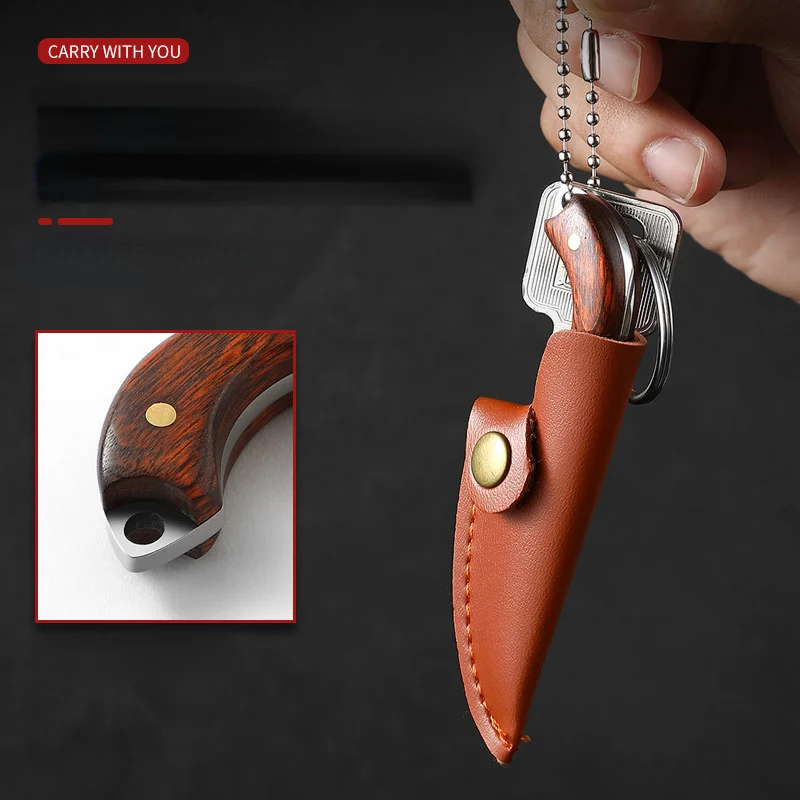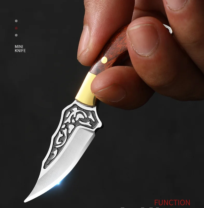 Wooden Handle Small Straight Knife Outdoor Camping Sharp Self-defense Fruit Knife Hand Meat Knife Unwrap Mini Pendant Gift Knife